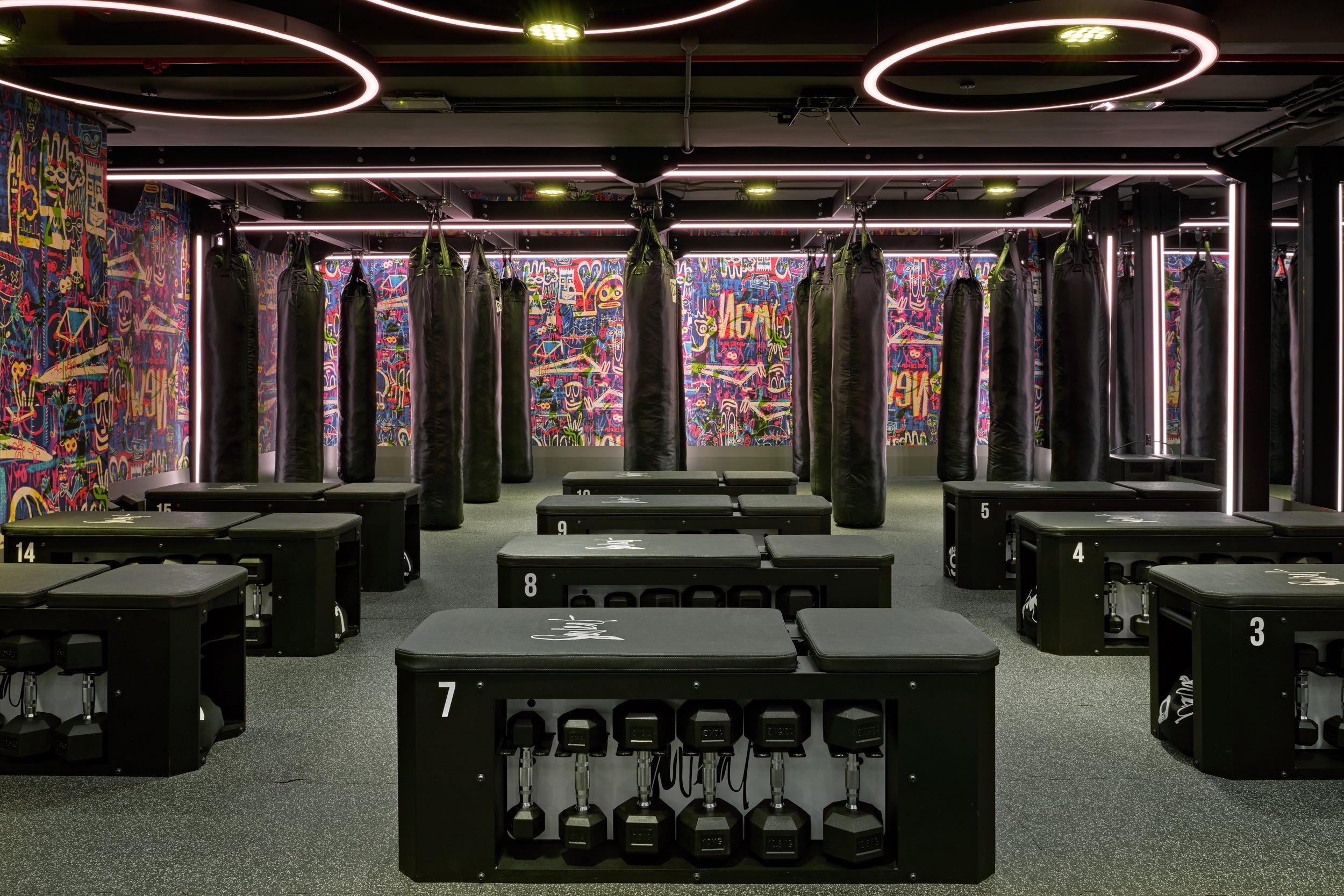 Adorning the contrast mix of introducing rich inviting clubby feel and the raw concrete walls, with art by London street artists injecting soul into the space. BXR has always been a fitness landmark but also a design destination to inspire, unfolding the different experiences for the guest.